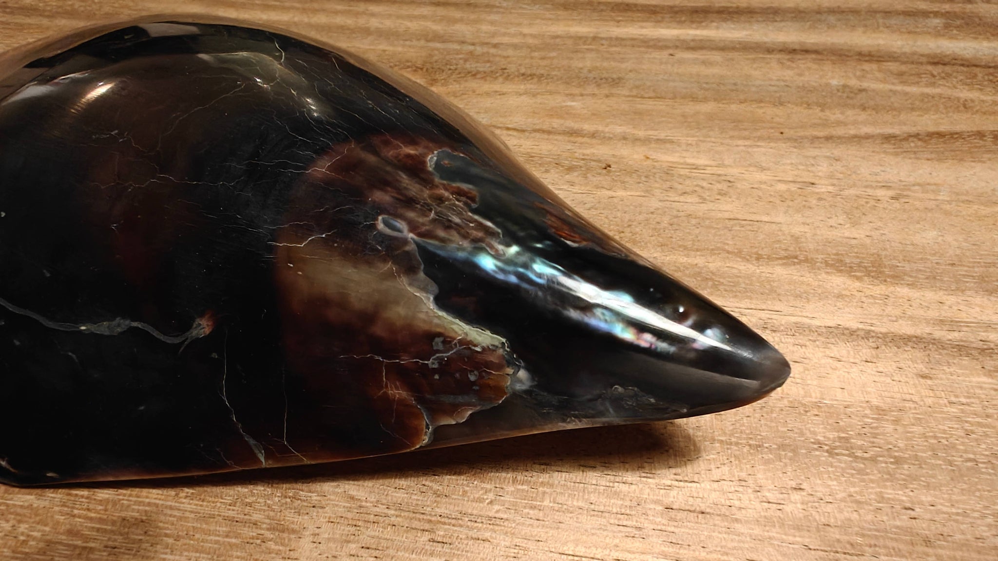 Bring a unique and exotic piece of nature into your interior with the Wadung. This special shell stands out with its deep, dark shades and the subtle, pearlescent sheen that glimmers in the light. Hold the Wadung in the sun? Then it becomes truly magical: the beautiful colors of blue, purple, and brown come to life, as if the shell has its own light source. The Wadung is a natural product sustainably sourced from the waters around Indonesia. Each shell is unique in shape, color, and pattern, ensuring you always have a one-of-a-kind decorative piece in your home. These shells are carefully selected and hand-finished to accentuate their natural beauty. Versatile in Use The Wadung is perfectly suited as: • Eye-catcher on a table or shelf • make it into a light of a bohemian interior style • Atmospheric accent in a beach or coastal theme Use it as it is or combine it with other natural decorative pieces.