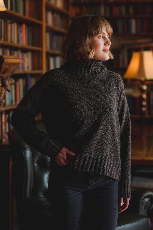 The Marcia Pullover has a lustrous roll neck, waist length in the body with slightly longer sleeves which are great when bunched up your forearm. 100% Donegal Merino wool, full of lovely flecks and tonnes of character.