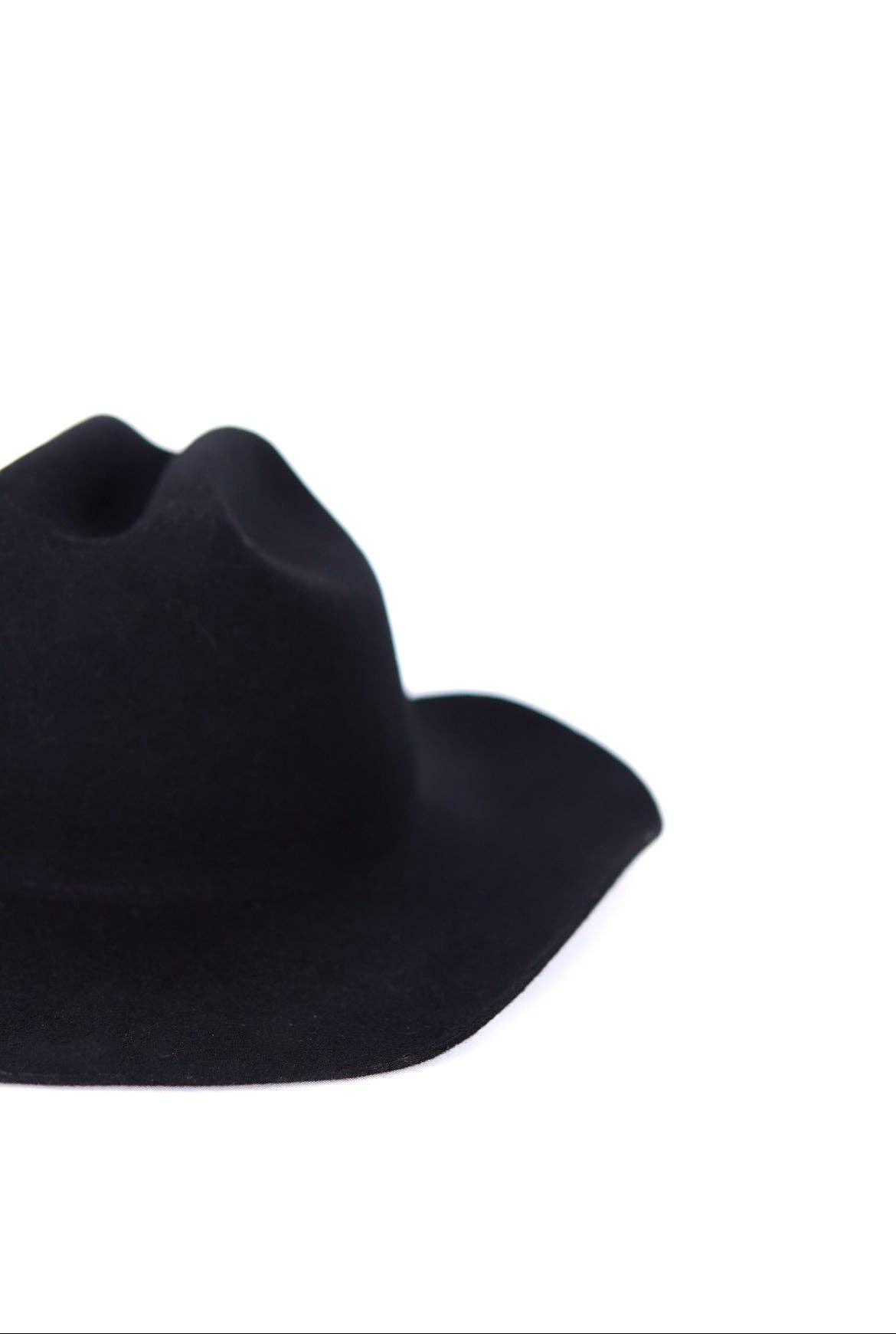 This all black design is a staple & classic piece. Quality to last a lifetime.  The 'Dolly's' sister, featuring the same shape & color. Adjustable- Velcro drawstrings under interior band. To perfect/downsize the fit up to 2cm.  Brim- 9 cm Height- 10-11 cm Structure- Stiff Our Felt hats are made from wool. Wool is natural, biodegradable, recyclable, & renewable.