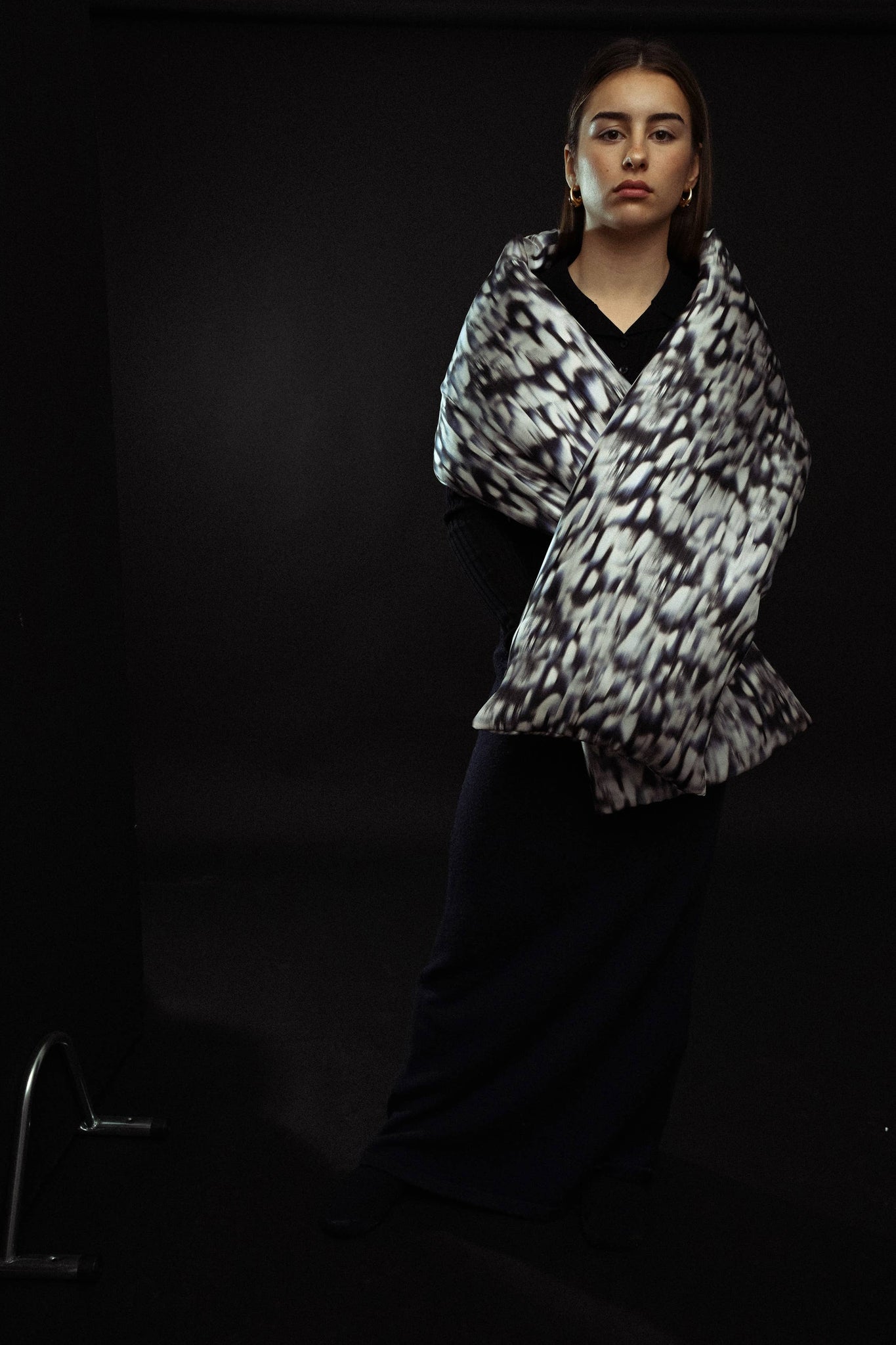 A scarf but also a printed padded vest that, combining extreme comfort and the preciousness of printed silk, wraps you in a soft silky cloud and warms you thanks to the special ZeroDown® certified padding.