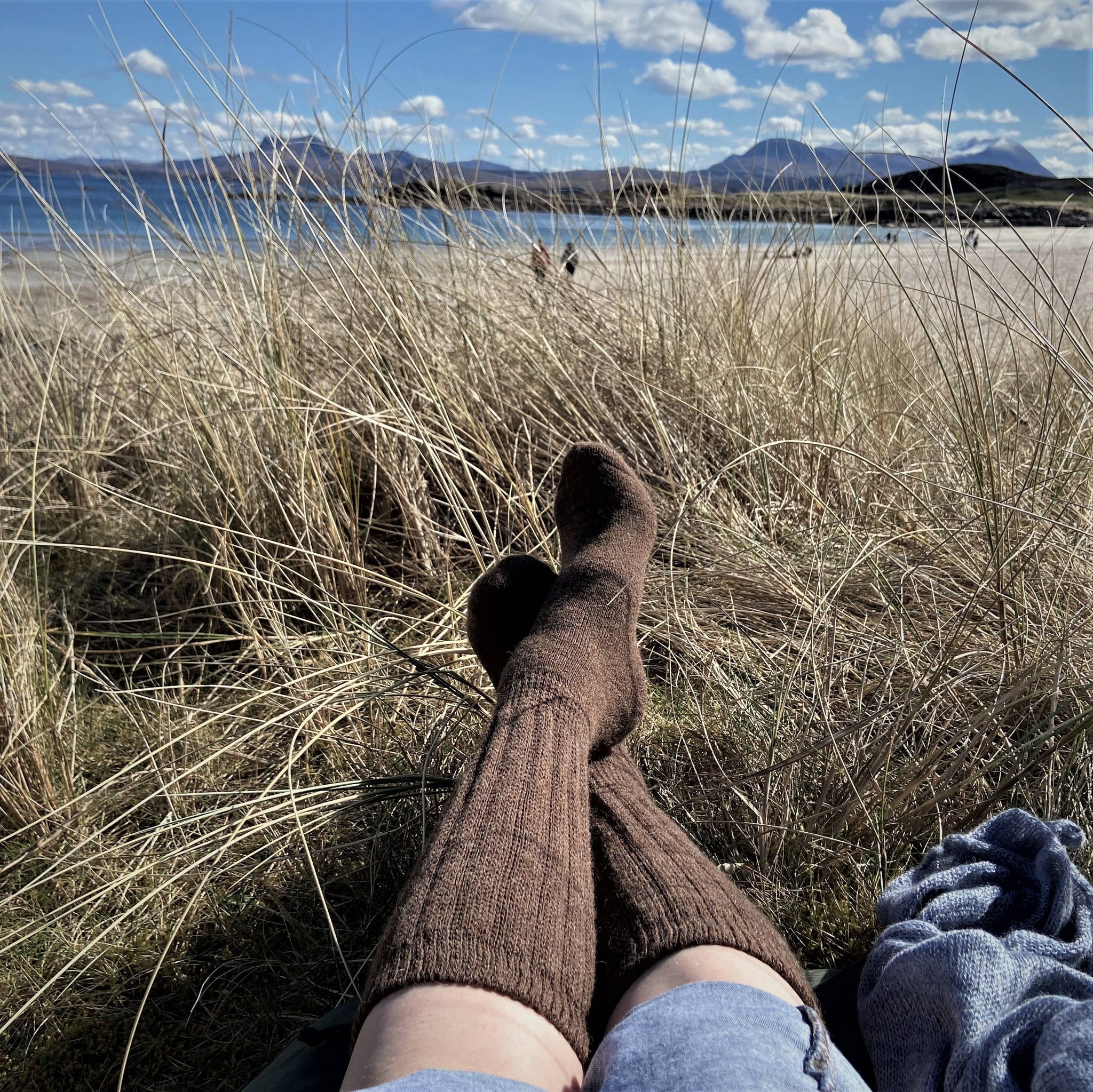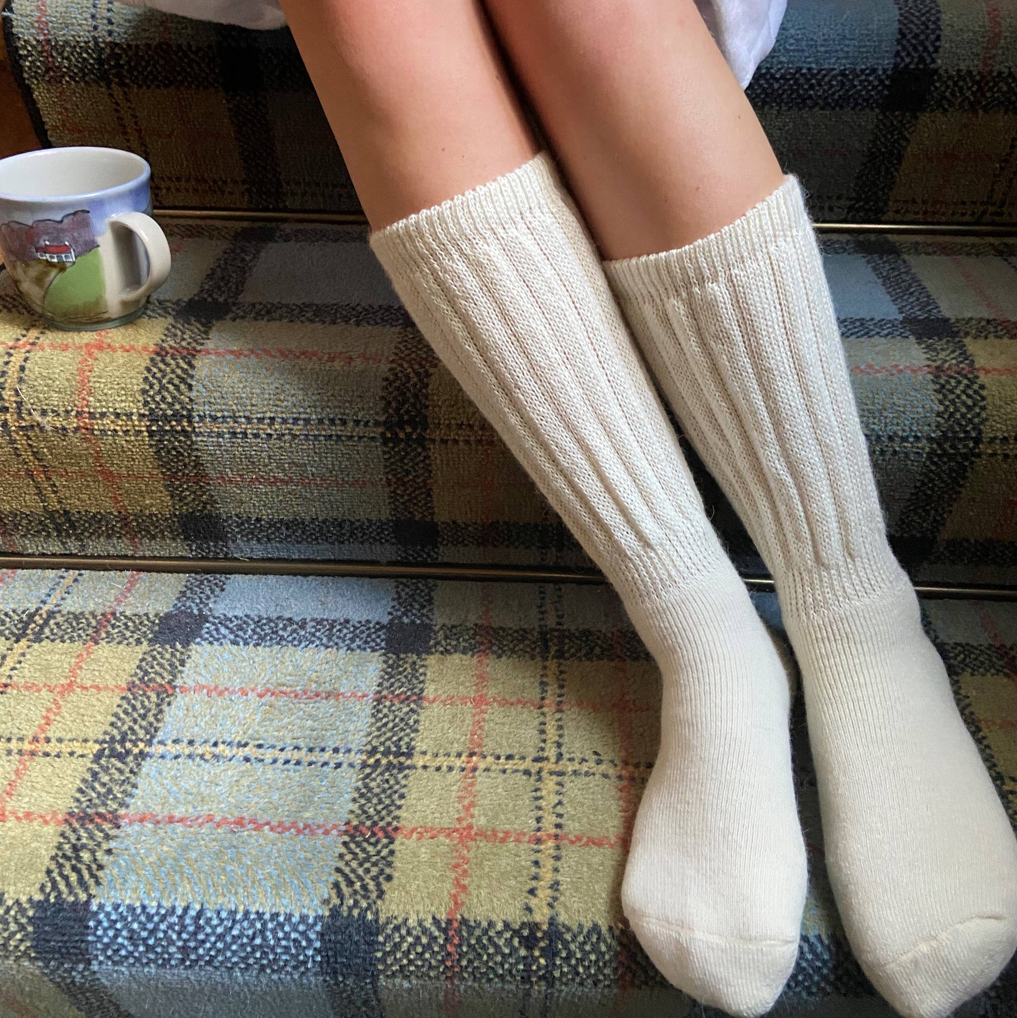 Alpaca Socks are a must for every sock drawer. Designed for outdoor wear or as slouch socks for lounging around at home. Long lasting alpaca blend, insulating and extremely comfortable, they can be cold machine washed and dried. The alpaca content provides sweat-wicking properties and the sock is designed with just enough elastication to ensure a perfect fit and durable shape. A lot of our customers enjoy wearing them as bed socks! Content: Alpaca 45% Acrylic 40% Nylon 9% Elastic 6%